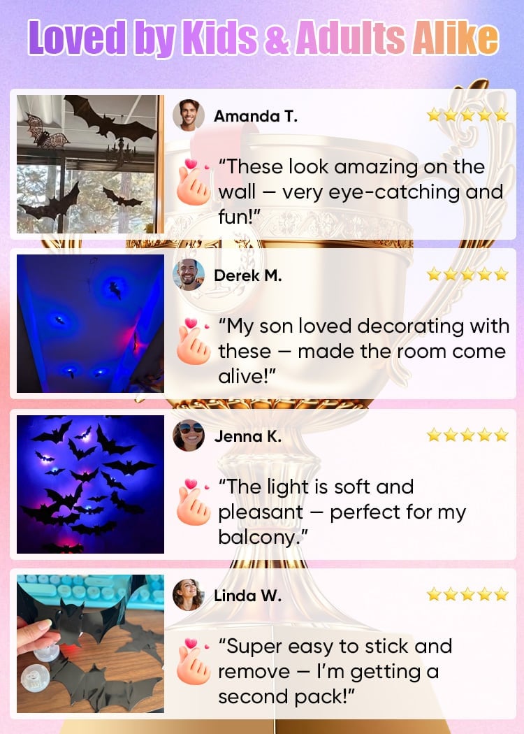 "My kids love these bats! They make Halloween decorations last all year round.“